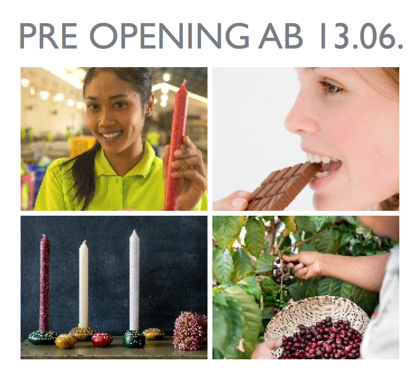 Vor der Eröffnung im September und den Umbaumaßnahmen im August werden wir ab 13. Juni bis 31. Juli einen Vorab-Verkauf durchführen. Wir freuen uns auf Ihren Besuch. Mit einer Auswahl schöner Handwerksprodukte zu günstigen Preisen wollen wir Sie schon jetzt neugierig machen. Wir danken allen, die uns bei der Neueröffnung des Weltladens unterstützt haben, insbesondere den über 130 neuen Mitgliedern unserer Genossenschaft aus Aachen und Umgebung. Sie haben mit dem Kauf von Anteilen die finanzielle Grundlage geschaffen. Weitere Genossinnen und Genossen (und Freiwillige für den Verkauf) sind natürlich willkommen. Übrigens: Am 12. September, zwei Tage vor der offiziellen Eröffnung, werden wir mit allen Freiwilligen und Mitgliedern gesondert feiern. Einladung folgt.