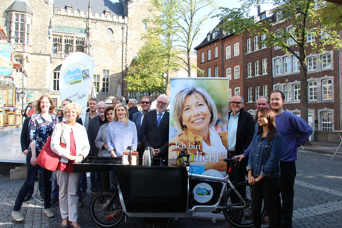 Im Jahr 2011 wurde Aachen ein erstes Mal als Fairtrade-Stadt ausgezeichnet. Zum zehnten Jahrestag dieser Auszeichnung erhielt Oberbürgermeisterin Sibylle Keupen am 2. Dezember 2021 eine entsprechende Urkunde von den Vertreterinnen und Vertretern der Steuerungsgruppe der Fairtrade-Stadt Aachen.